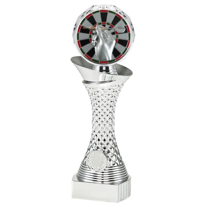 Deze zilveren trofee is in 3 maten beschikbaar bij Budgettrophy. Er zit een mooie darts disc op de bovenkant van de trofee, en aan de onderkant is er ruimte voor een eigen afbeelding én een tekstplaatje! Voor de afbeelding kan je een eigen ontwerp uploaden. Of een van onze afbeeldingen kiezen. De montage van de trofee wordt gratis gedaan door Budgettrophy. ✓ Speciaal ontworpen voor darts ✓ Hoge kwaliteit ✓ Persoonlijke tekst mogelijk