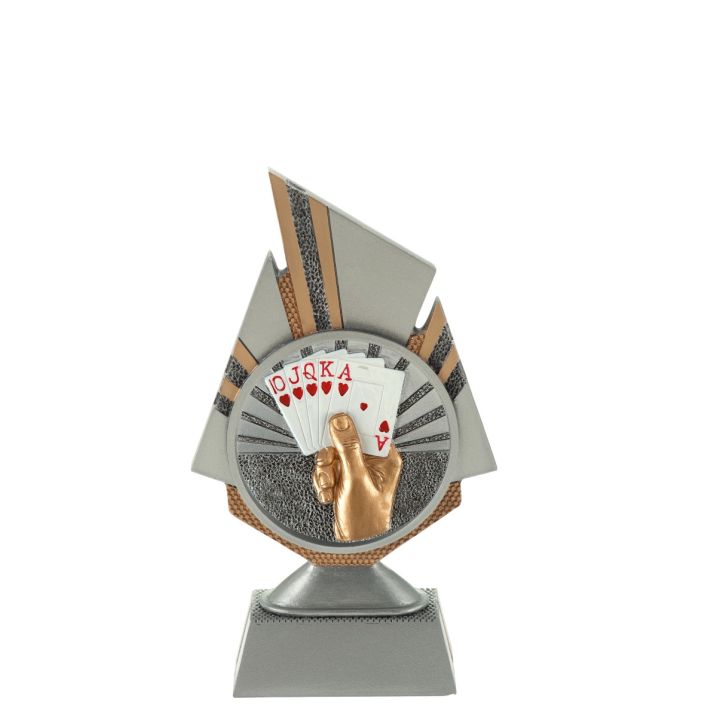Deze trofee heeft Budgettrophy in 3 maten op voorraad. Het is een mooie resin houder, waar een kaart disc in bevestigd is. Onderaan de trofee is er plek voor een tekstplaatje waar je een eigen tekst op kan laten zetten. De montage van deze trofee wordt gratis uitgevoerd door Budgettrophy.