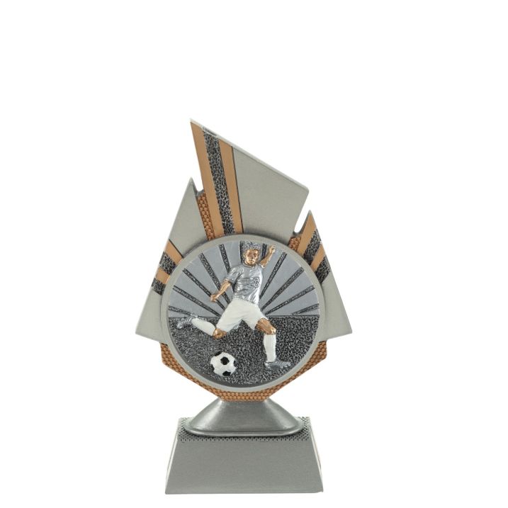 Deze trofee heeft Budgettrophy in 3 maten op voorraad. Het is een mooie resin houder, waar een voetballer disc in bevestigd is. Onderaan de trofee is er plek voor een tekstplaatje waar je een eigen tekst op kan laten zetten. De montage van deze trofee wordt gratis uitgevoerd door Budgettrophy.