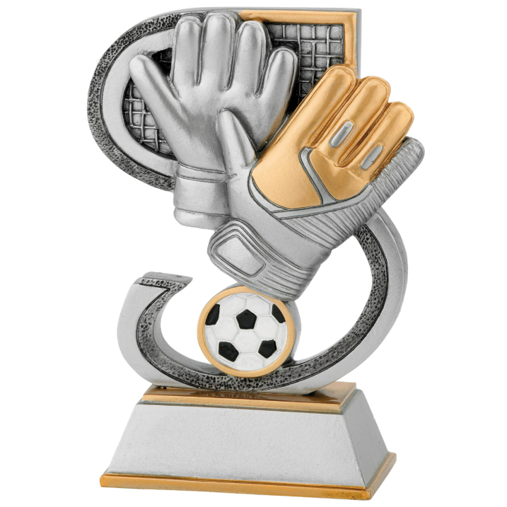 Deze mat zilveren resin met gouden details speciaal voor de keeper heeft direct beschikbaar uit voorraad. De trofee laat twee keepershandschoenen en een voetbal zien. Op de voet van de trofee kunt u een tekstplaatje laten toevoegen met je eigen tekst. monteert het tekstplaatje gratis voor u! Geschikt voor voetbal Hoge kwaliteit Persoonlijke tekst mogelijk.