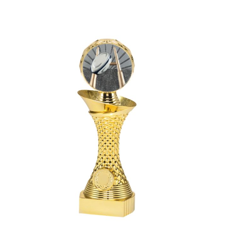Deze gouden trofee is in 3 maten beschikbaar bij Budgettrophy. Er zit een mooie rugby disc op de bovenkant van de trofee, en aan de onderkant is er ruimte voor een eigen afbeelding én een tekstplaatje! Voor de afbeelding kan je een eigen ontwerp uploaden. Of een van onze afbeeldingen kiezen. De montage van de trofee wordt gratis gedaan door Budgettrophy.