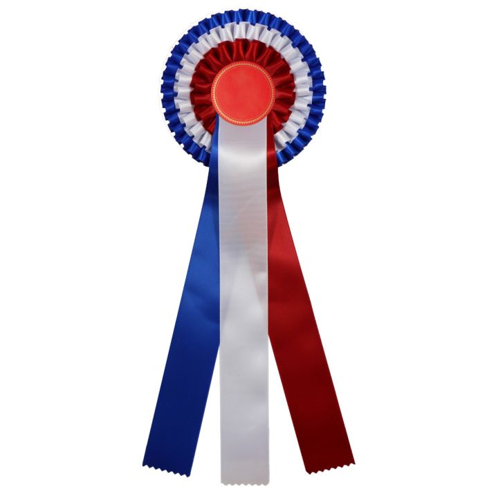 Blauw rozet wit rood