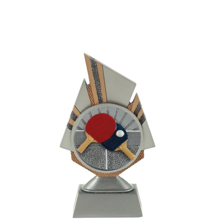 De Jacko Tafeltennis Beeld Trofee is een sportieve resin trofee, speciaal ontworpen voor tafeltennistoernooien en clubkampioenschappen. Deze uitvoering is verkrijgbaar in drie verschillende maten, zodat u voor iedere categorie of podiumplek een passende prijs kunt kiezen. In de houder is een tafeltennis - disc verwerkt, waardoor deze trofee perfect geschikt is voor enkel -, dubbel - of jeugdwedstrijden. Onderaan bevindt zich ruimte voor een tekstplaatje met je persoonlijke gravering.