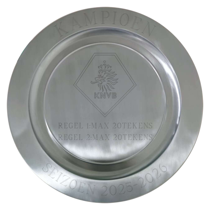 Vier jullie kampioenschap op een blijvende manier met deze stijlvolle kampioensschaal. Ideaal wanneer jullie onverwacht de titel pakken en dat moment direct willen vastleggen. De schaal is standaard voorzien van het KNVB-logo en de tekst ‘Seizoen 2025-2026’. Daarnaast heb je de mogelijkheid om twee persoonlijke tekstregels toe te voegen (maximaal 20 tekens per regel), zodat de schaal volledig aansluit bij jullie prestatie. Binnen 2 werkdagen geleverd, dus perfect voor een snelle huldiging.