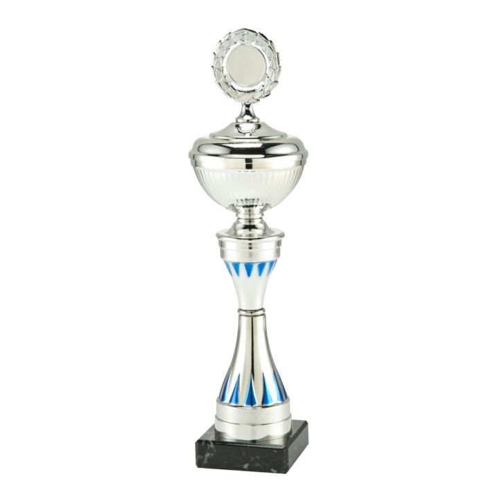 Martine Elegante trofee in zilver en details in blauw met deksel vanaf 26 cm