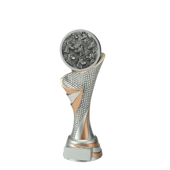 De Orion Hondensport Beeld Trofee is een elegante, staande trofee met een zilveren afwerking en verfijnde gouden details. Dit model is verkrijgbaar in drie verschillende maten, zodat u voor iedere klasse of categorie een passende prijs kunt kiezen.