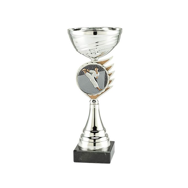 Deze trofee heeft in 3 verschillende hoogtes op voorraad. De trofee is zilver met daarop een karate disc. Onderaan de trofee is ruimte voor een graveerplaatje met je eigen tekst. voert de montage van het graveerplaatje gratis voor u uit! Speciaal ontworpen voor karate Hoge kwaliteit Persoonlijke tekst mogelijk.