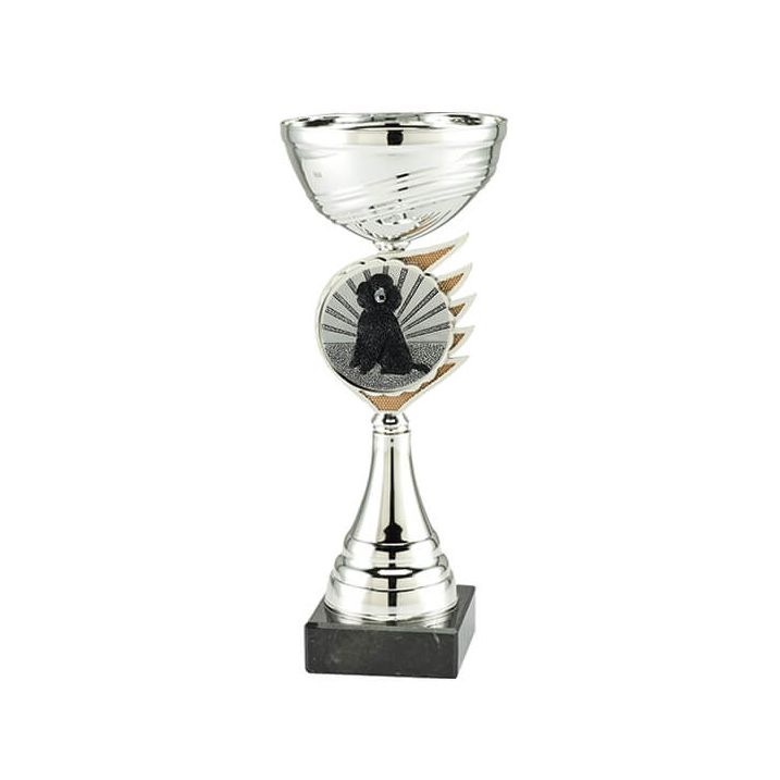 Deze trofee heeft in 3 verschillende hoogtes op voorraad. De trofee is zilver met daarop een poedelprijs disc. Onderaan de trofee is ruimte voor een graveerplaatje met uw eigen tekst. voert de montage van het graveerplaatje gratis voor u uit! ✓ Speciaal ontworpen als poedeprijs ✓ Hoge kwaliteit ✓ Persoonlijke tekst mogelijk