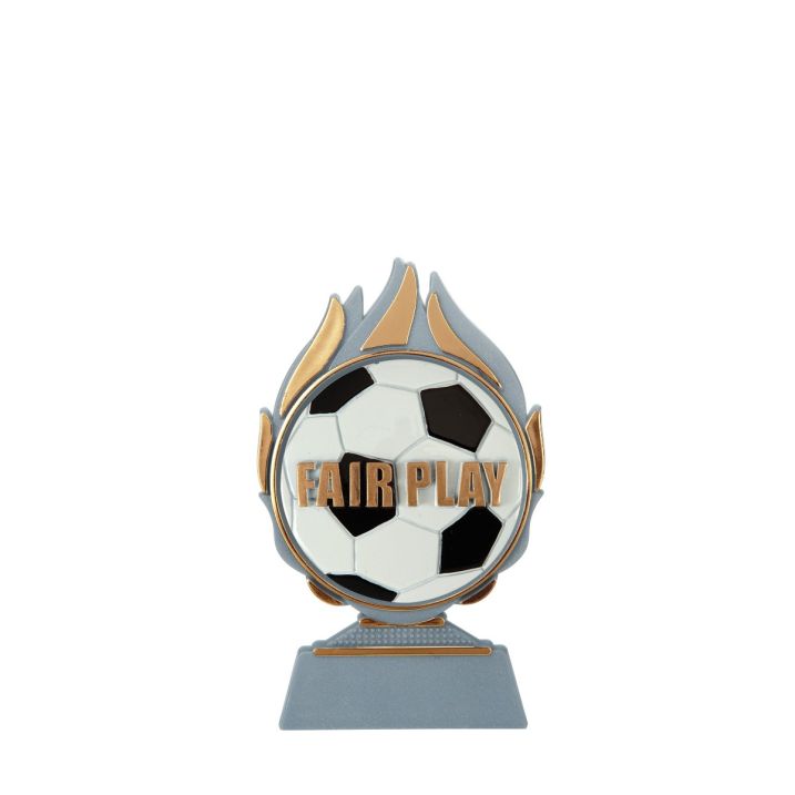 Deze trofee heeft in 3 verschillende kleuren op voorraad. De trofee is grijs met gouden details met daarop een voetbal disc. Onderaan de trofee is ruimte voor een tekstplaatje met je eigen tekst. voert de montage van het tekstplaatje gratis voor u uit! Speciaal ontworpen voor voetbal Hoge kwaliteit Persoonlijke tekst mogelijk.