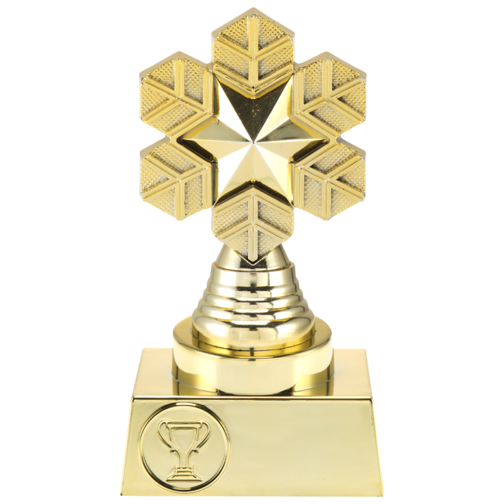 Deze mooie trofee in 3D staat mooi in iedere prijzenkast. De trofee in de kleur goud kan je gebruiken voor iedere wedstrijd in de wintersport. Door een tekst toe te voegen stem je de trofee helemaal of op jouw evenement. Kies daarnaast uit meer dan 100 gratis (sport)afbeeldingen om op de voet van de trofee te plaatsen. Liever een eigen ontwerp? Geen probleem! Upload dan zelf een afbeelding.