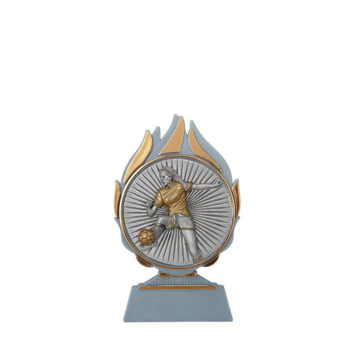De Valora Vlammen Trofee Voetbal Dames is een sportieve en stijlvolle prijs met een dynamisch vlammen-design, speciaal ontworpen voor damesvoetbaltoernooien en competities. De trofee is verkrijgbaar in drie kleurvarianten en heeft een moderne grijze afwerking met luxe gouden accenten.