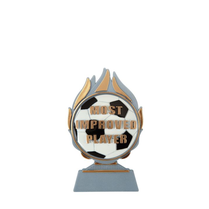 Deze trofee heeft Budgettrophy in 3 verschillende kleuren op voorraad. De trofee is grijs met gouden details met daarop een voetbal disc. Onderaan de trofee is ruimte voor een tekstplaatje met uw eigen tekst. Budgettrophy voert de montage van het tekstplaatje gratis voor u uit!